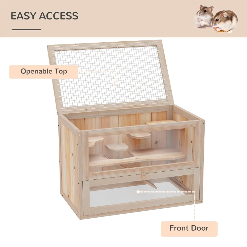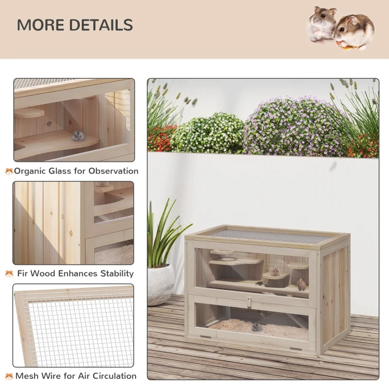 - PREMIUM MATERIAL: Our hamster cage is made of fir wood with excellent craftsmanship. It is indoor- and outdoor-friendly, resistant to sun and humidity.