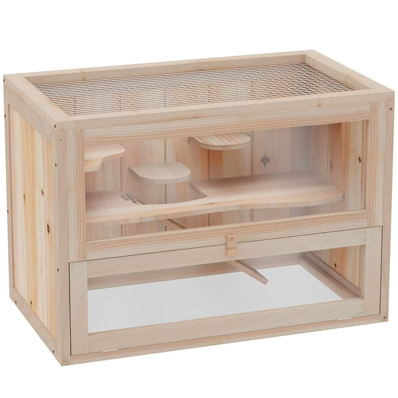 Wooden Hamster Cage 2-Level Small Animal Habitat