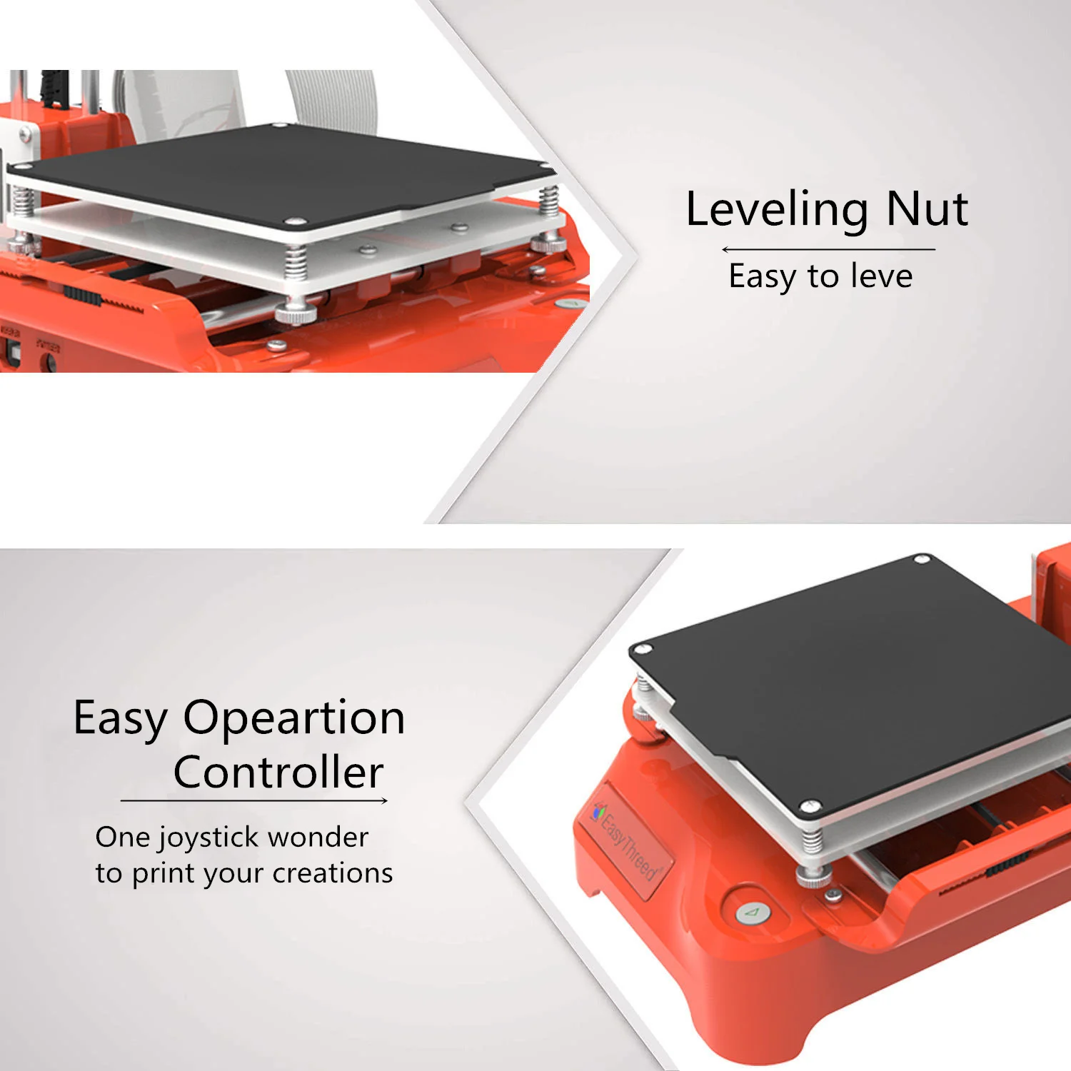 The Easythreed X1 Mini 3D Printer is a user-friendly, consumer-grade printer perfect for household education and student use. It boasts a compact printing size of 100x100x100mm and supports one-key printing, making it exceptionally convenient for beginners and hobbyists. This printer is equipped with a 1.75mm nozzle and a 0.4mm nozzle, ensuring precise and quality prints.