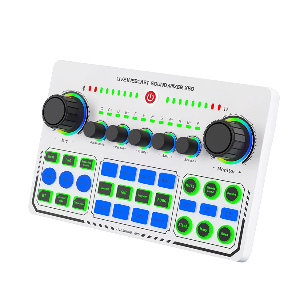 One-Key Free Switch Mode: The device offers six major live broadcast modes for various occasions, including host, professional, recording studio, pop, shouting, and electronic music.