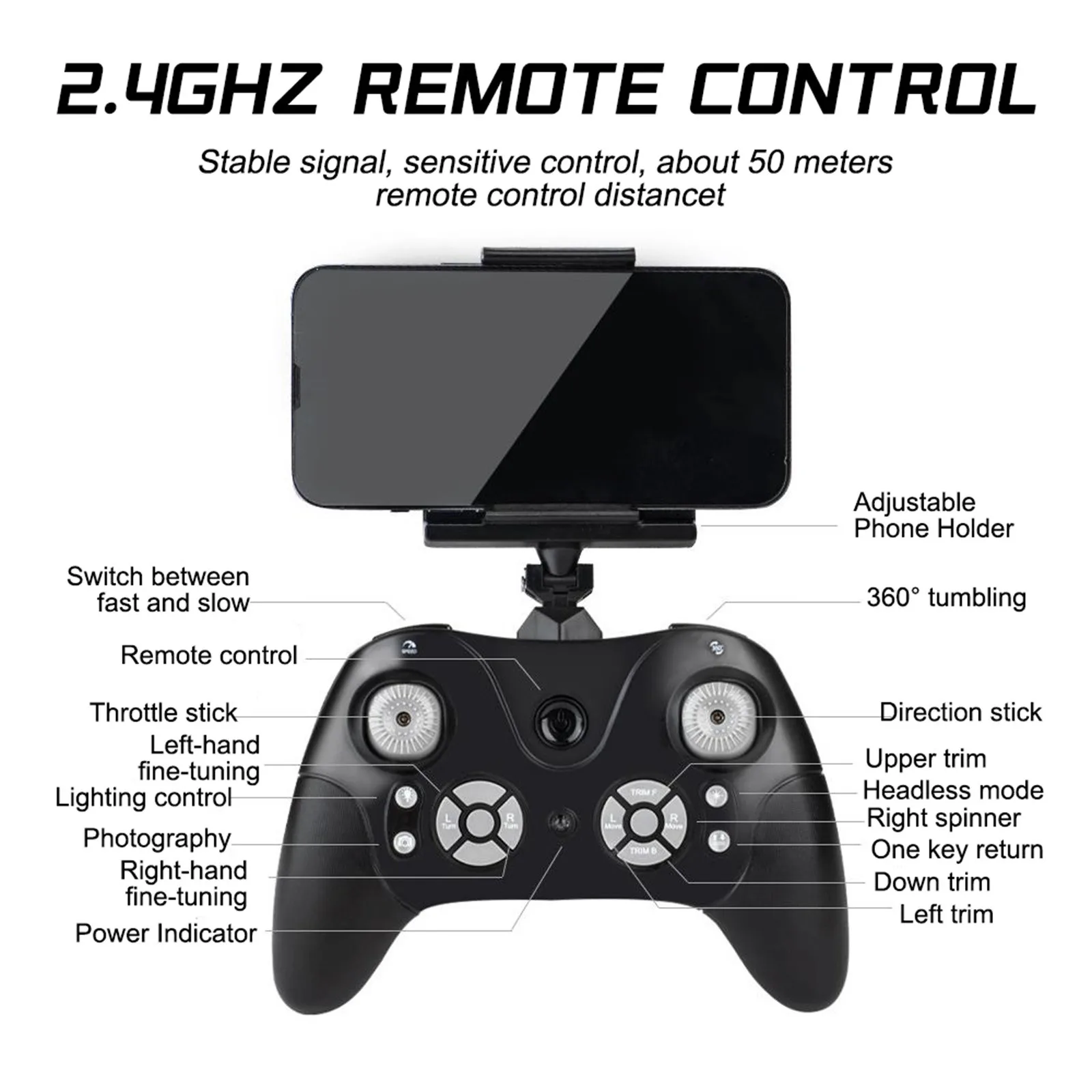 - Equipped with a four-axis aircraft system and a six-axis gyroscope for stable flight, capable of performing 360° flip stunts.