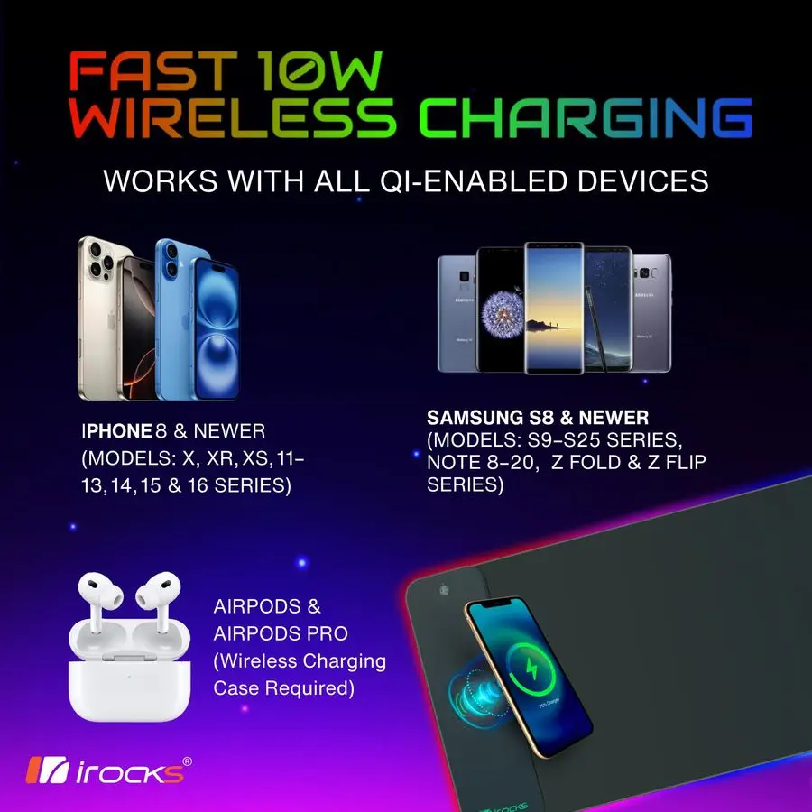 Upgrade your desk setup with a multifunction extended mouse pad designed for smooth performance, wireless charging convenience, and eye-catching RGB lighting. This extra-long desk mat offers a practical blend of workspace protection, gaming support, and modern style for home offices, gaming stations, and everyday desktop use.