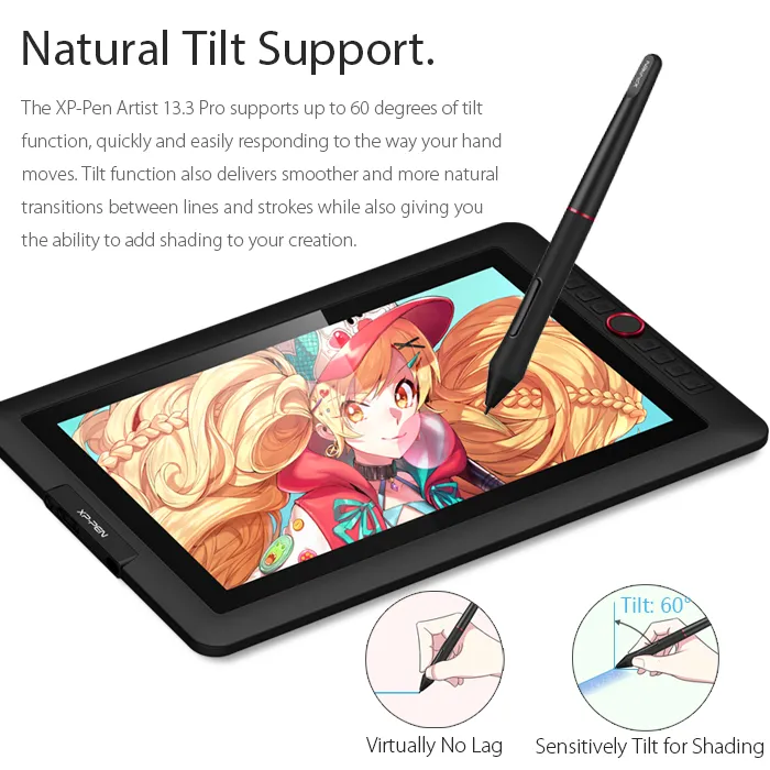 The XP-Pen Artist 13.3 Pro supports up to 60 degrees of tilt function, so now you don’t need to adjust the brush direction in the software again and again. Simply tilt to add shading to your creation and enjoy smoother and more natural transitions between lines and strokes.