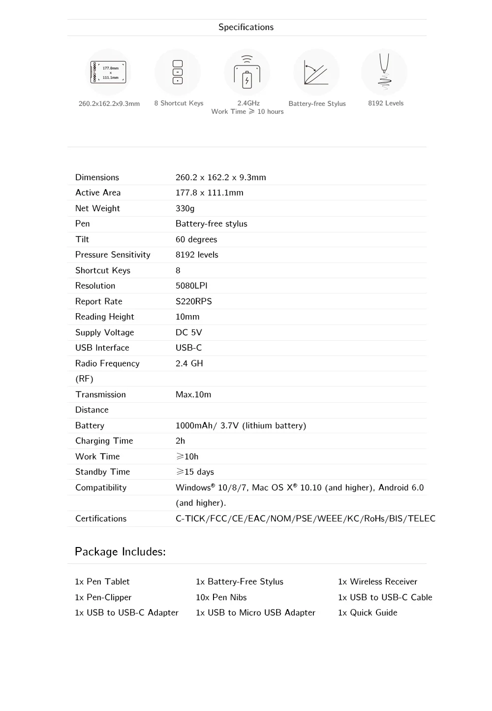- Extensive compatibility: Compatible with Windows 7/8/10, MAC OS 10.10 (and higher), Android 6.0 (and higher), and major software like Photoshop®, SAI®, and more.