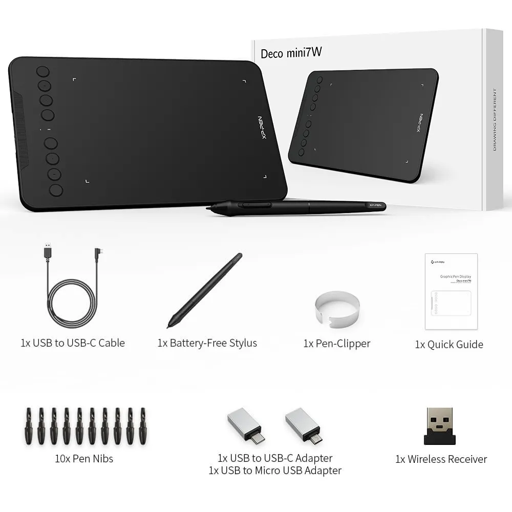 XPPen Mini7W: 7×4″ Wireless Graphics Tablet for Art