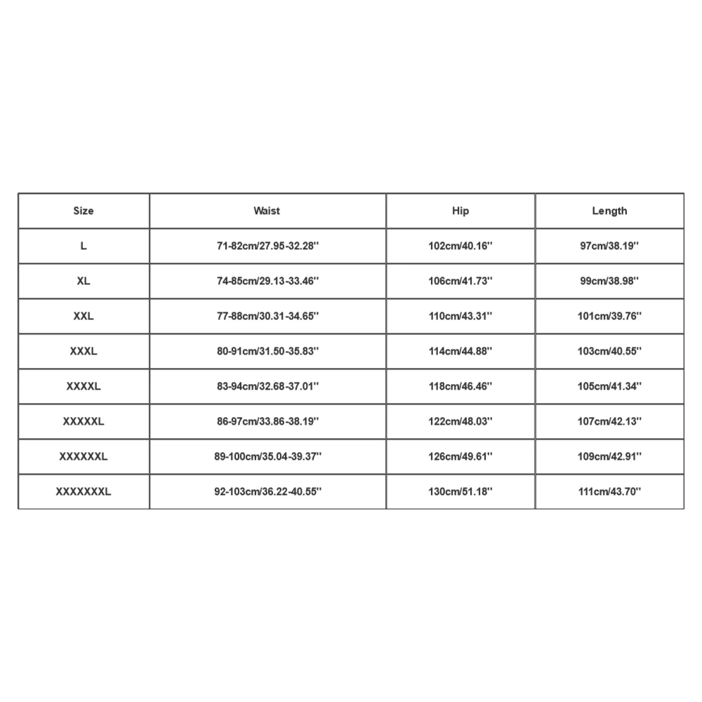 Size: XXXXXXXL, Waist: 92-103cm/36.22-40.55”, Hip: 130cm/51.18”, Length: 111cm/43.70”