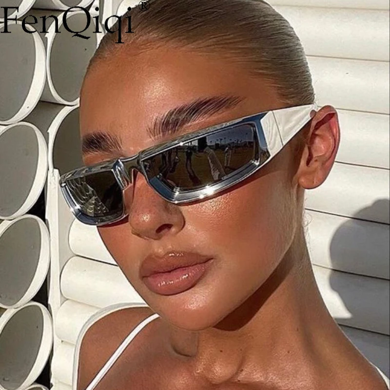 Y2K Punk Cycling Sunglasses: Silver Mirror Fashion