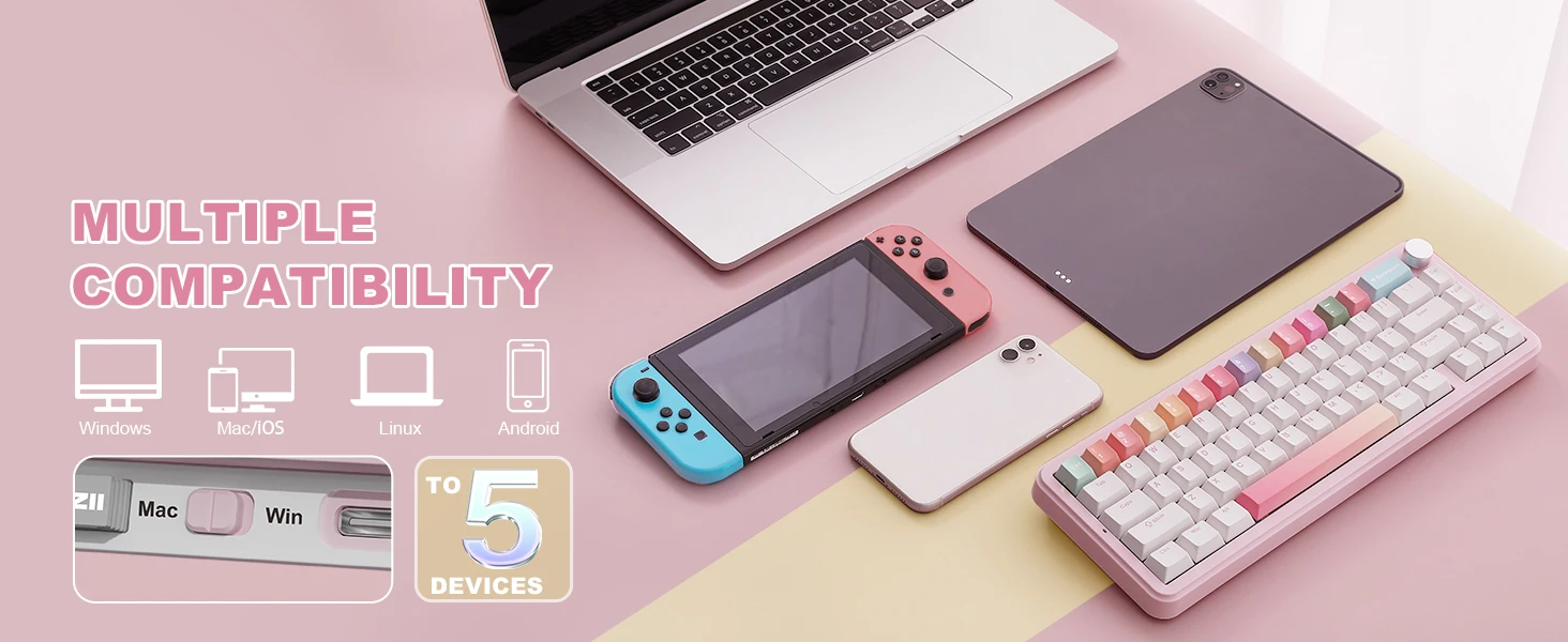 The B68 features full-key hot-swap sockets compatible with 3-pin and 5-pin switches. It ships with pre-lubricated linear switches for smooth typing and long durability. You can replace switches without soldering for easy customization.