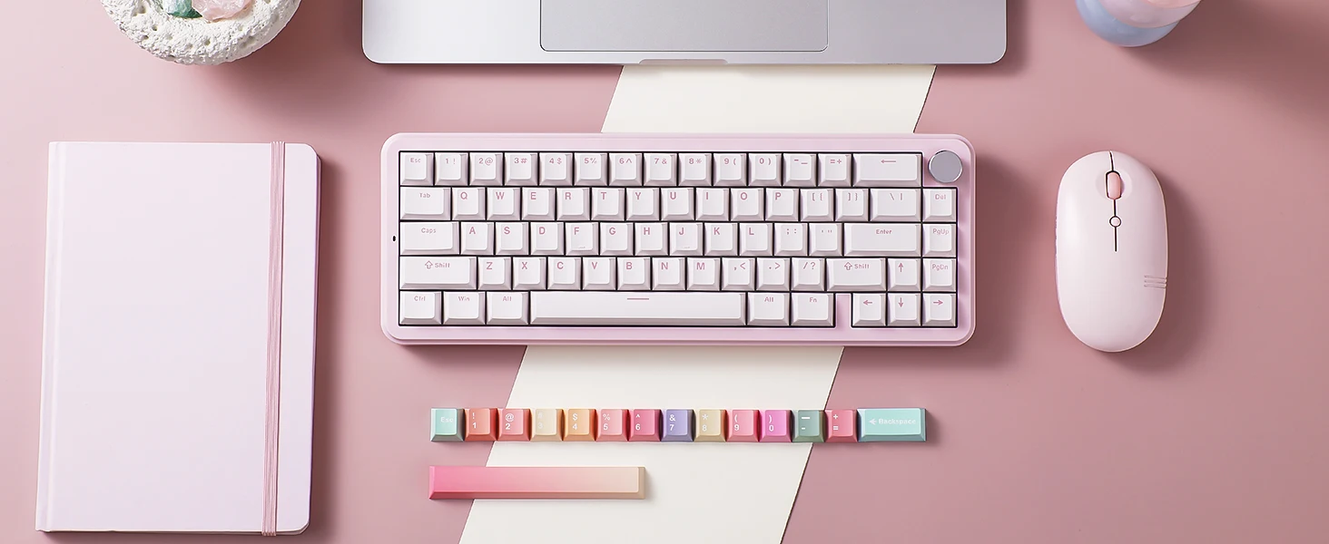 South-facing LEDs provide vivid RGB effects. Durable double-shot PBT keycaps and extra gradient keycaps let you personalize your setup. You can adjust functions and lighting through software for deeper customization.