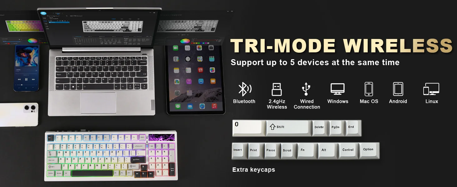 Tri-mode wireless + multi-device support (Bluetooth 5.0 / 2.4G / USB-C)