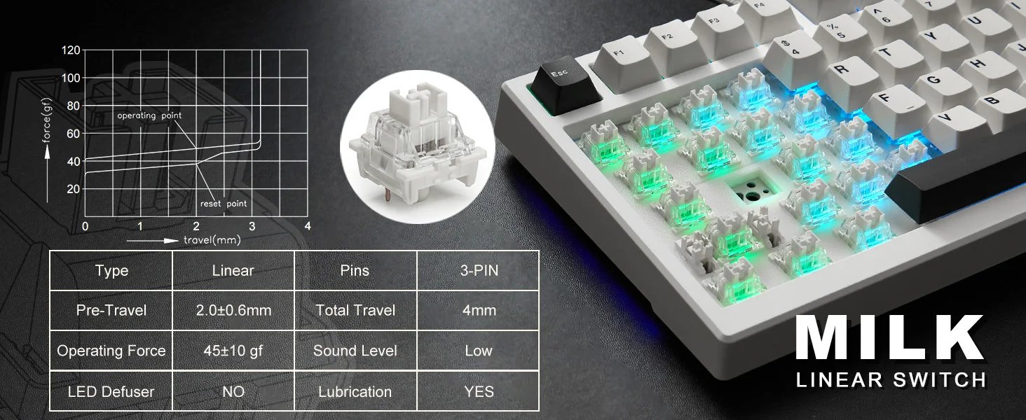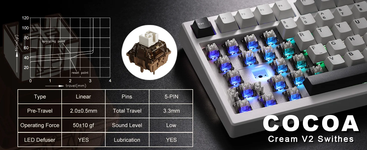 - Switch choices: YUNZII Milk Linear, YUNZII Cocoa Cream V2