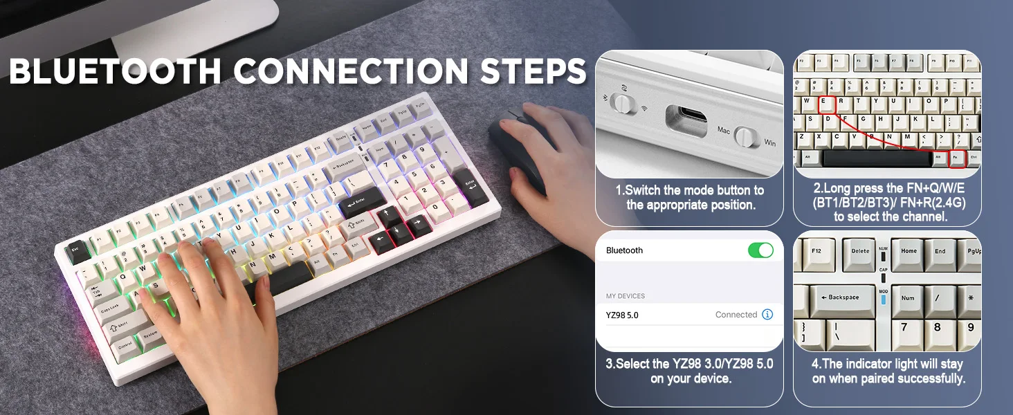 YUNZII YZ98 Wireless RGB Gaming Keyboard