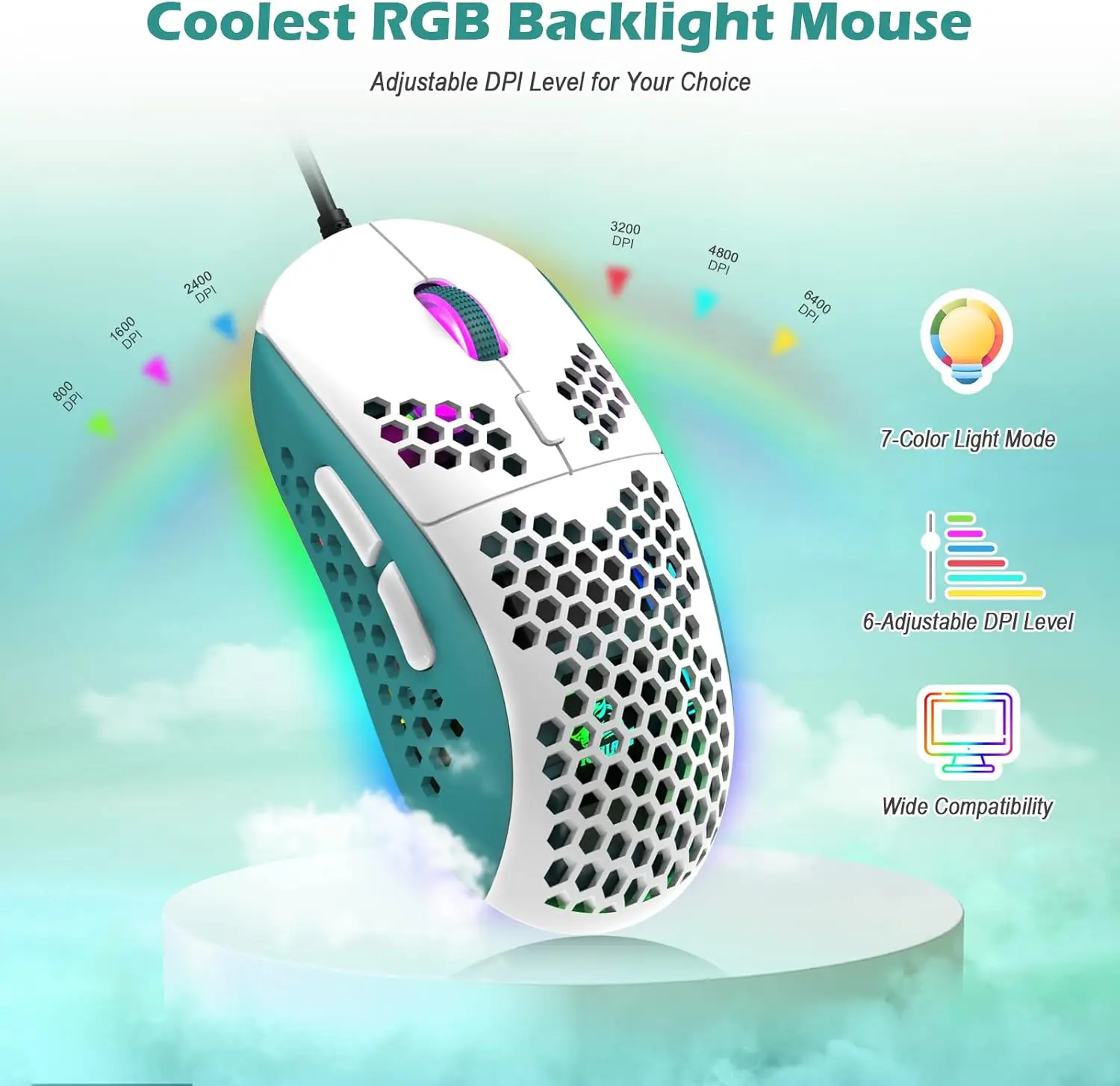 - 6 Adjustable DPI Levels: Toggle between 800–6400 DPI for precision in every game or task.