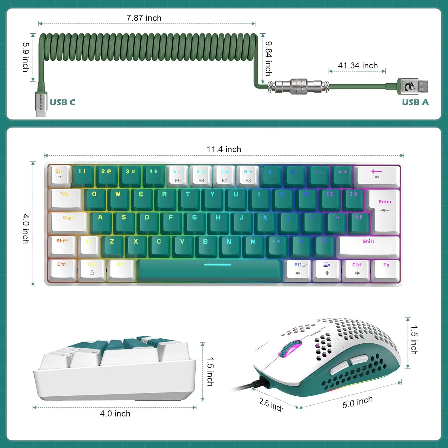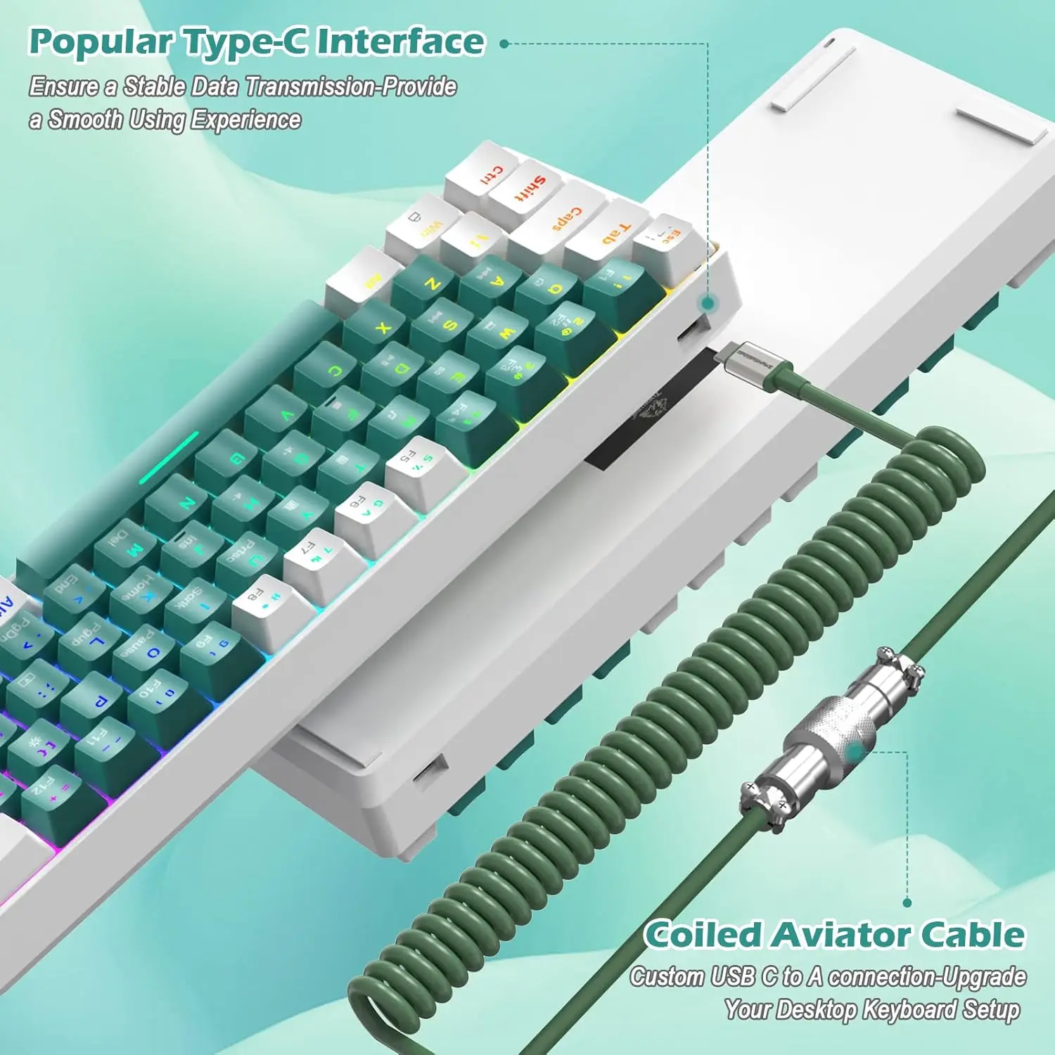 - Rainbow RGB Backlighting: Choose static or dynamic lighting modes with adjustable speed and brightness to match your style.