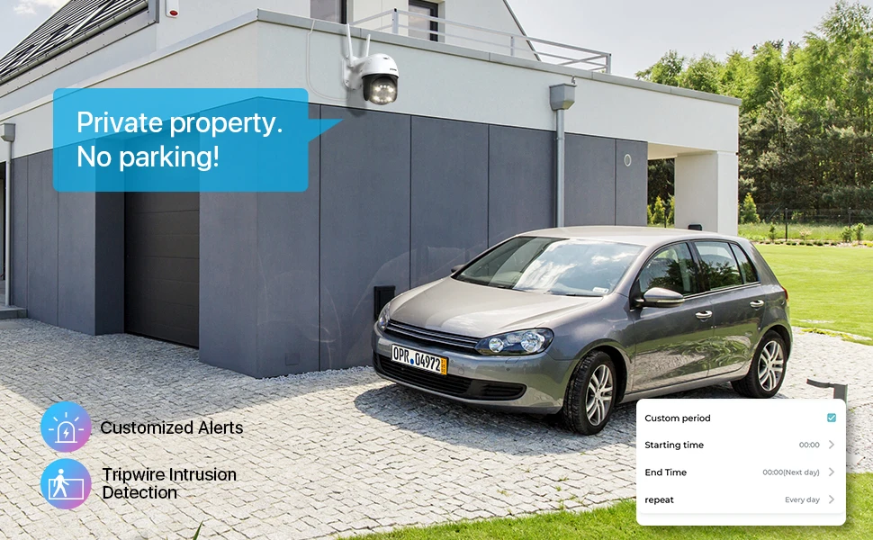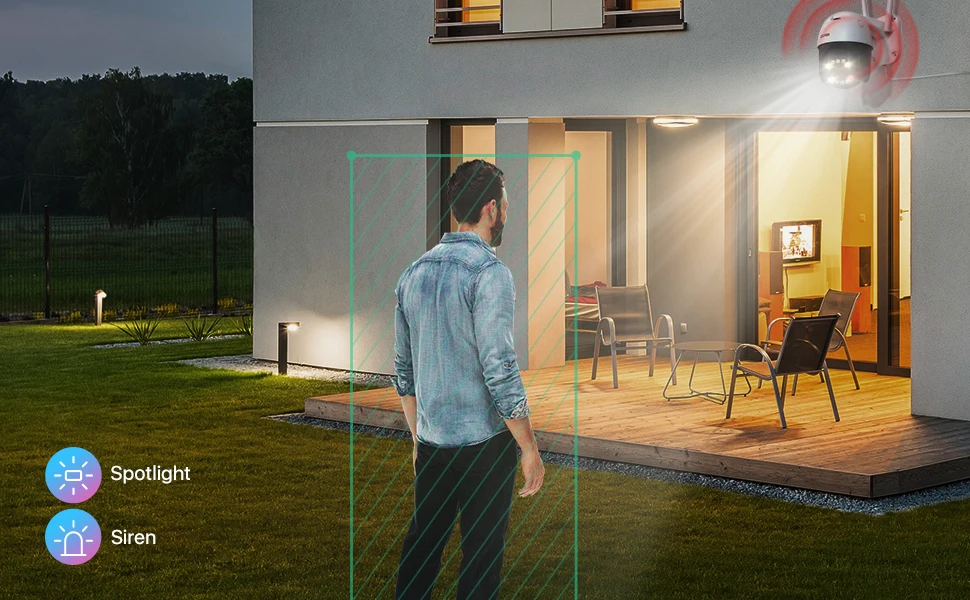 Powerful spotlights and siren will be triggered automatically to warn off attempted intruders.